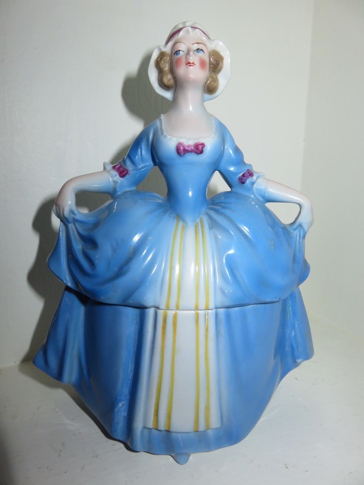 Title (ebay affiliate link): ANTIQUE VINTAGE LADY POWDER JAR MADAME POMPADOUR DRESSER DOLL E&R GERMANY ART