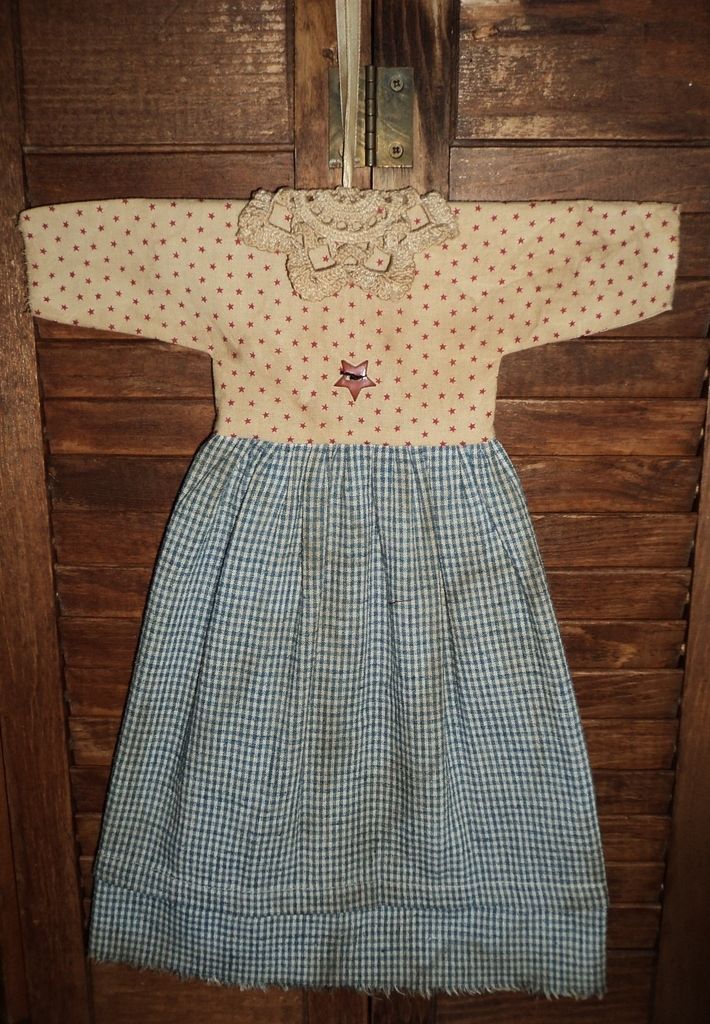 Title (ebay affiliate link): GRUNGY~PRIMITIVE WALL~CUPBOARD~DOLL DRESS AMERICANA RED STARS FOLK ART DECOR