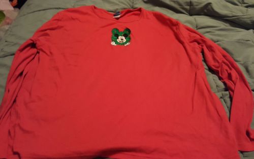 Title (ebay affiliate link): Disney womens Xl long sleeve Christmas t shirt w/ Mickey Mouse wreath red