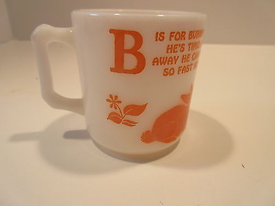 B Is For BUNNY Child's Alphabet Cup/Mug White Milk Glass Vintage Hazel Atlas