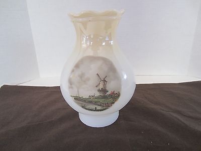 Milk Glass 7 1/2" Hurricane Lamp Shade Chimney Windmill Portrait Beige Top