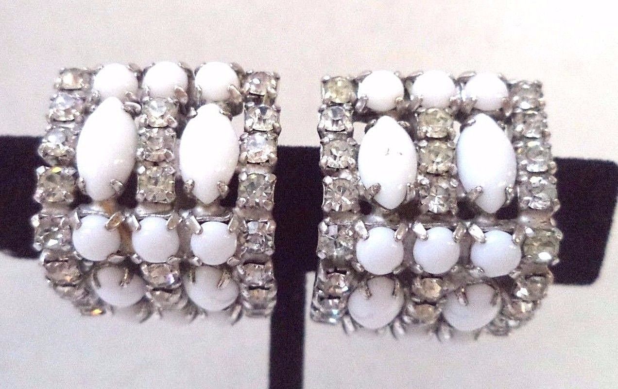 Title (ebay affiliate link): STUNNING VINTAGE ESTATE HIGH END RHINESTONE & MILK GLASS CURVED EARRINGS! G7213$