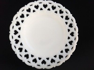 Title (ebay affiliate link): VINTAGE WESTMORELAND LACE EDGE WHITE MILK GLASS 8.5" PLATE FORGET ME NOT