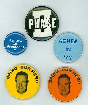 5 Vintage 1972 Spiro T. Agnew Political Campaign Pinback Buttons - Phase II
