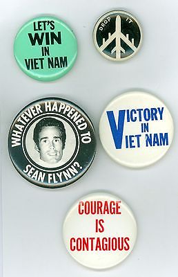 5 Vintage 1960-70's Peace & Anti-War Cause Pinback Buttons - Victory In Vietnam