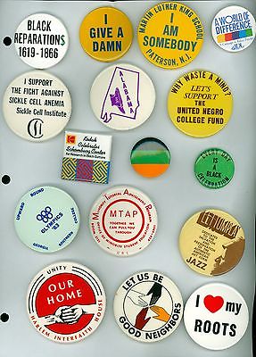 Title (ebay affiliate link): 16 Vintage 1970s 80s Black Social Justice Cause Pinback Buttons Good Neighbors