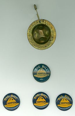 4 Vintage 1914 20s Chicago Mayor Wm Thompson Political Pinback Buttons & 1 Cap