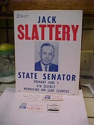 Waverly(Jack) Slattery,CA State Senator 1958 Poster,etc