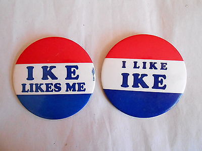 Title (ebay affiliate link): Vintage Dwight Eisenhower 3" Political Pinback Set - I Like Ike & Ike Likes Me