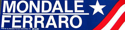 Title (ebay affiliate link): MONDALE & FERRARO Presidential Original 1984 WINDOW BUMPER STICKER