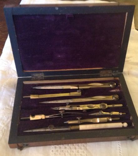 Title (ebay affiliate link): Antique Draughtsman Drawing Instruments in Oak Box