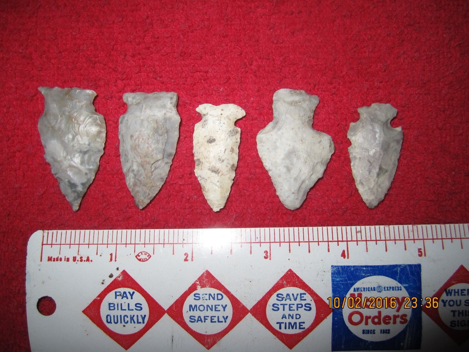 Title (ebay affiliate link): LOT OF 5 ASSORTED STYLE & MATERIALS ARROWHEADS ( WEST BEND, WISCONSIN )