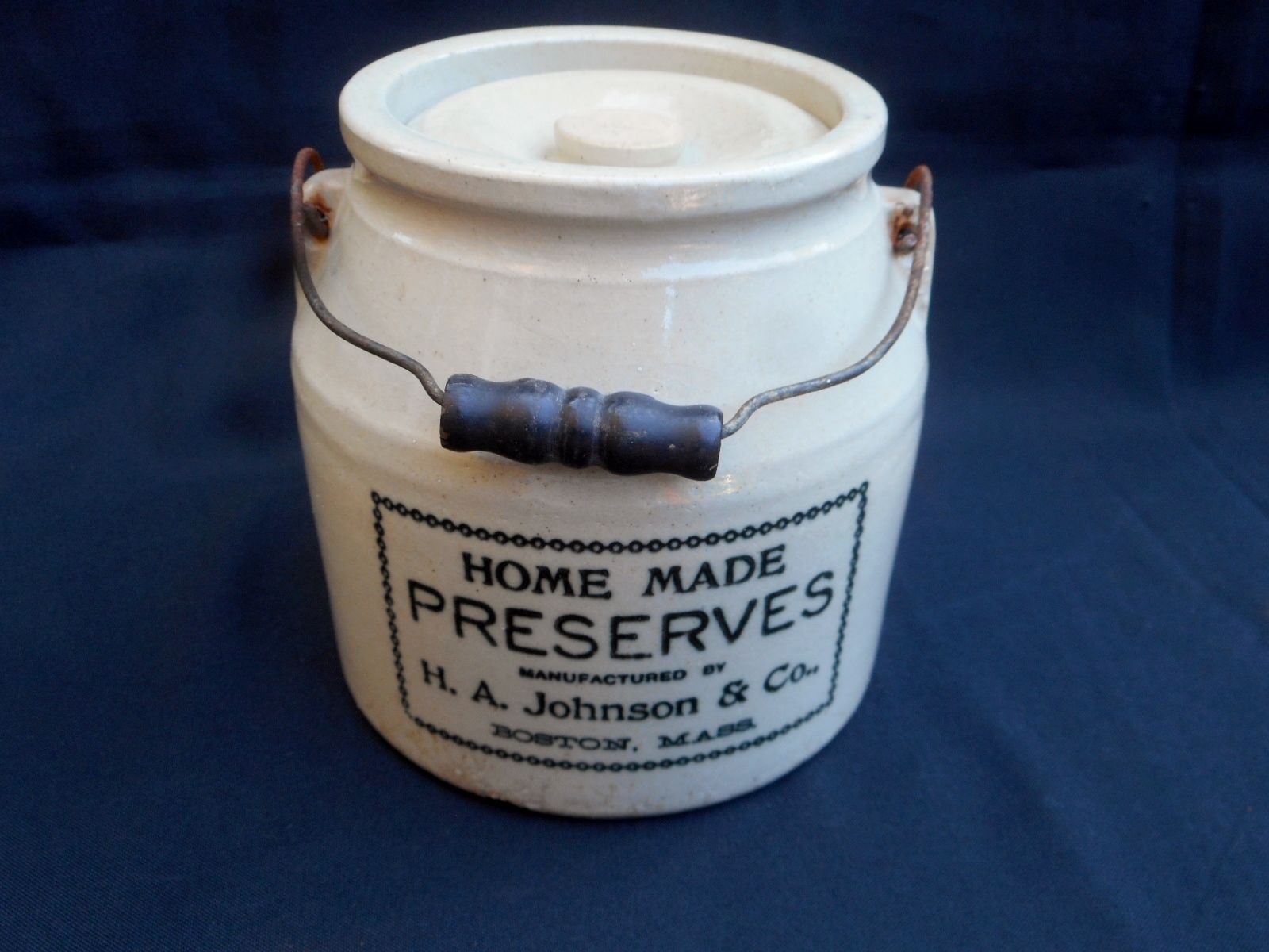 MINT CONDITION JAM CROCK WITH LID AND BAIL HANDLE 1880