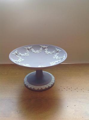 Wedgwood White on Lilac Jasperware Footed Compote Grapevine Swags Ram Heads