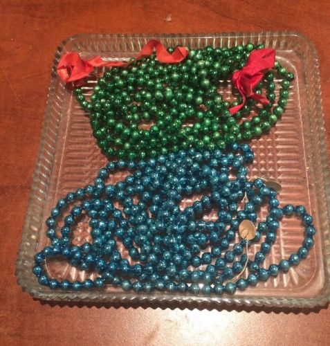 2 strands Vintage Christmas Mercury Glass Garland Bright Blue And Green Beads