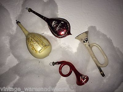 Vintage Mixed Musical Horns & Mandolins Mercury Christmas Ornaments Glass