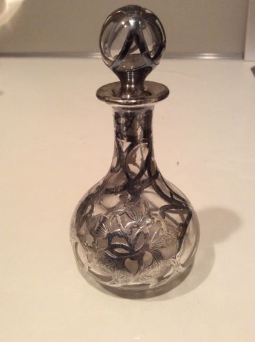 Vict.vanity jar/perfume with sterling silver overlay, 3"