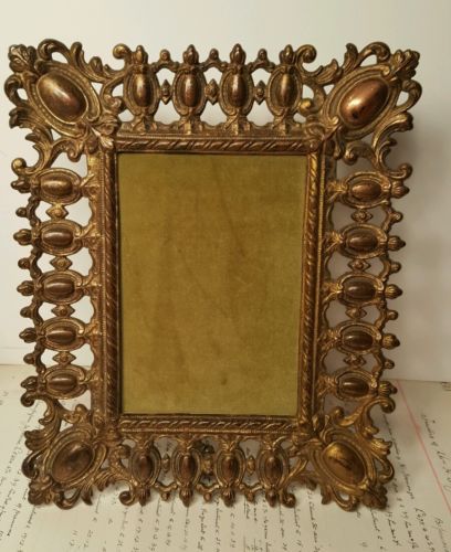 Antique Ornate Heavy Metal Picture Frame Victorian Easel Back