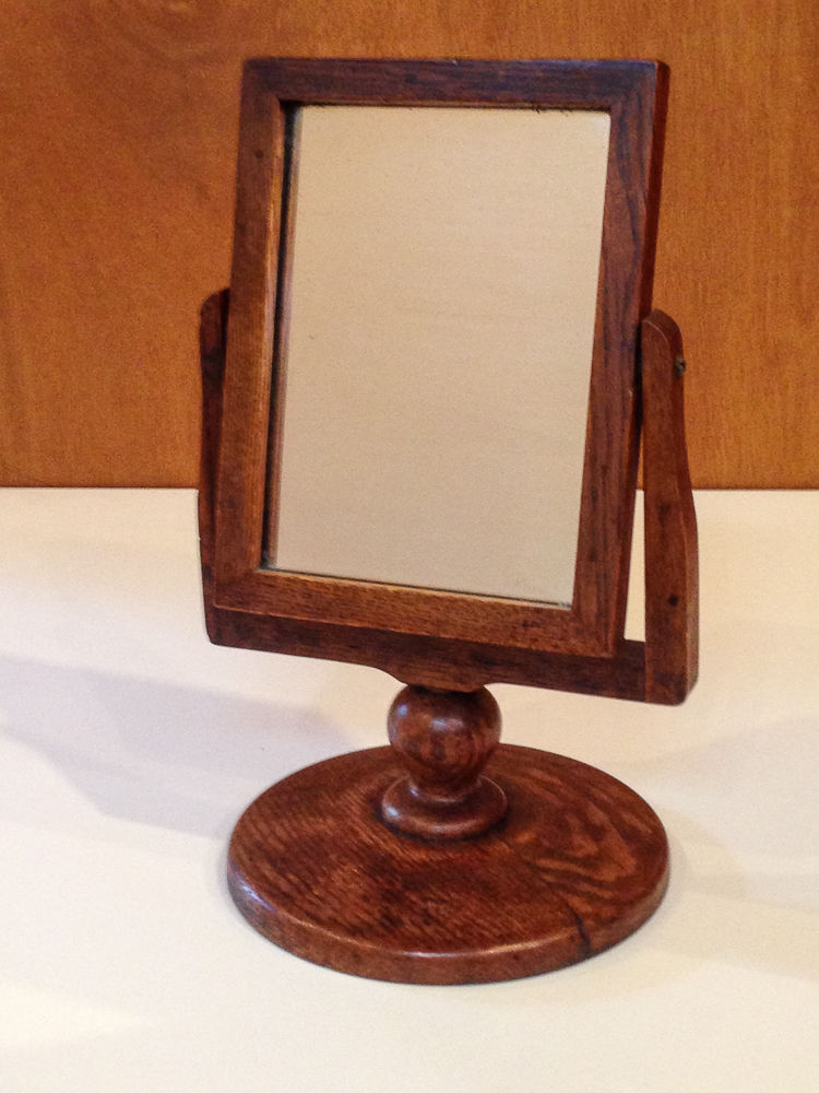 Antique Oak Framed Mirror, Swivels & Tips, Tabletop Shaving Style