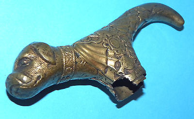 RARE ANTIQUE 18TH CENTURY NOVELTY BRONZE DOG SHAPED WALKING STICK CANE HANDLE