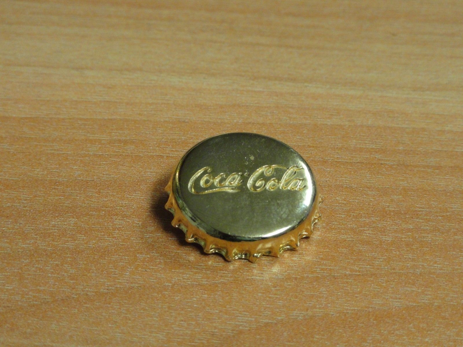 Title (ebay affiliate link): Vintage Coca Cola Bottle Cap Gold Tone Pinback