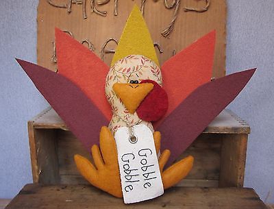 Primitive Fall Autumn Hand Stitched Tag Painted Tail Turkey Bowl Fillers Ornies