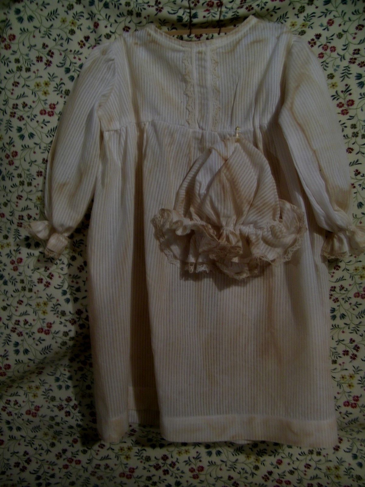 primitive prairie pioneer night gown with dust cap tea stained new item