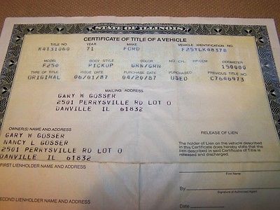Title (ebay affiliate link): VINTAGE 1971 FORD F250 PICKUP TRUCK TITLE