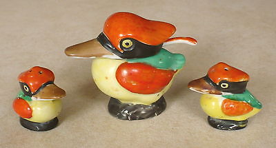 Vintage Porcelain Toucan Bird Salt & Pepper Shakers & Open Salt