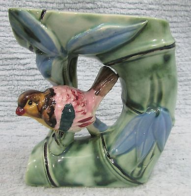 Songbird Bird Vintage Japan Ceramic Florart Old Hand Painted 2x5 Vase FREE S/H