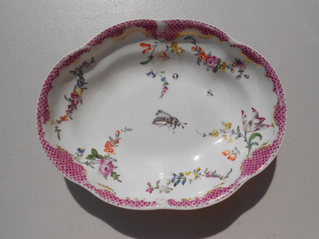 Title (ebay affiliate link): Old Antique 18th C Furstenberg Porcelain Bowl Insects Floral Swags Fishscale