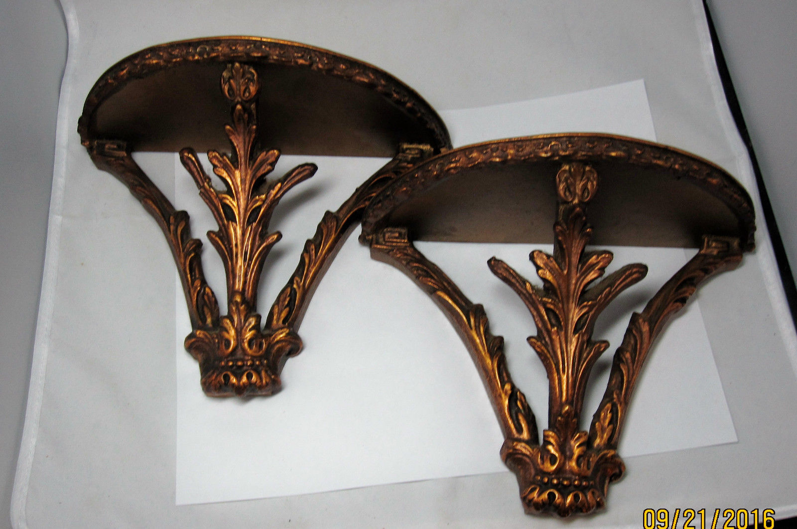 Pr Antique Victorian Italian Carved Wood Gold Gilt Rococo Shelves