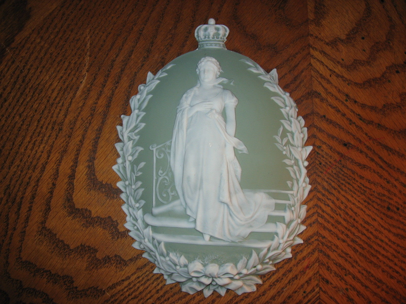 Antique German Jasperware Hanging Plaque Queen Victoria Circa 1890