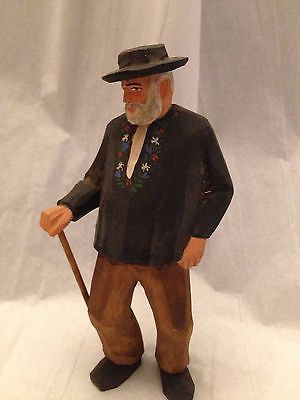 Title (ebay affiliate link): HAND-CARVED WOODEN FIGURE - FOLK ART - 5-1/4" - OLD MAN W/CANE - SWITZERLAND