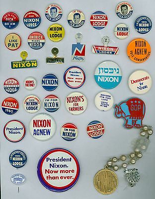 Title (ebay affiliate link): 32 Vintage 1960-72 President Nixon Political Pinback Buttons 4 Tabs Nixon Lodge