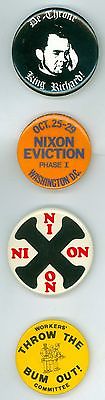 4 Vintage 1970's Anti-Nixon Watergate Pinback Buttons - Throw The Bum Out