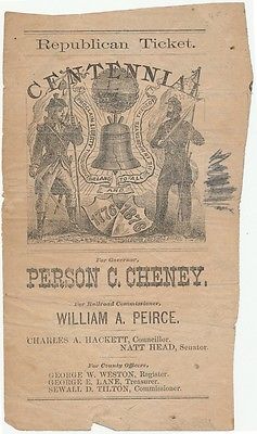 Title (ebay affiliate link): RARE 1876 Ballot New Hampshire Republican Centennial Ticket: Abolitionist Cheney