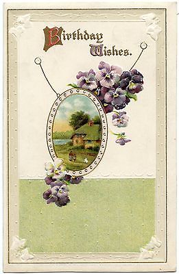 Title (ebay affiliate link): B2504 Birthday Wishes Pansies Ivy Rural View - Embossed Postcard Series No. 2385