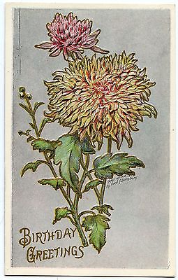 Title (ebay affiliate link): B2517 Purple Chrysanthemums "Birthday Greetings" - Fred C Lounsbury Old Postcard