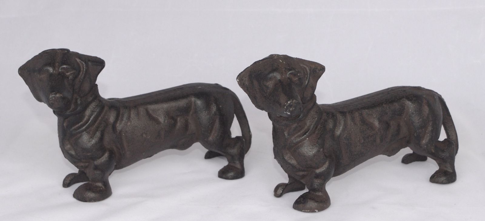 Pair of Rustic Cast Iron Door Stoppers - Sausage Dogs