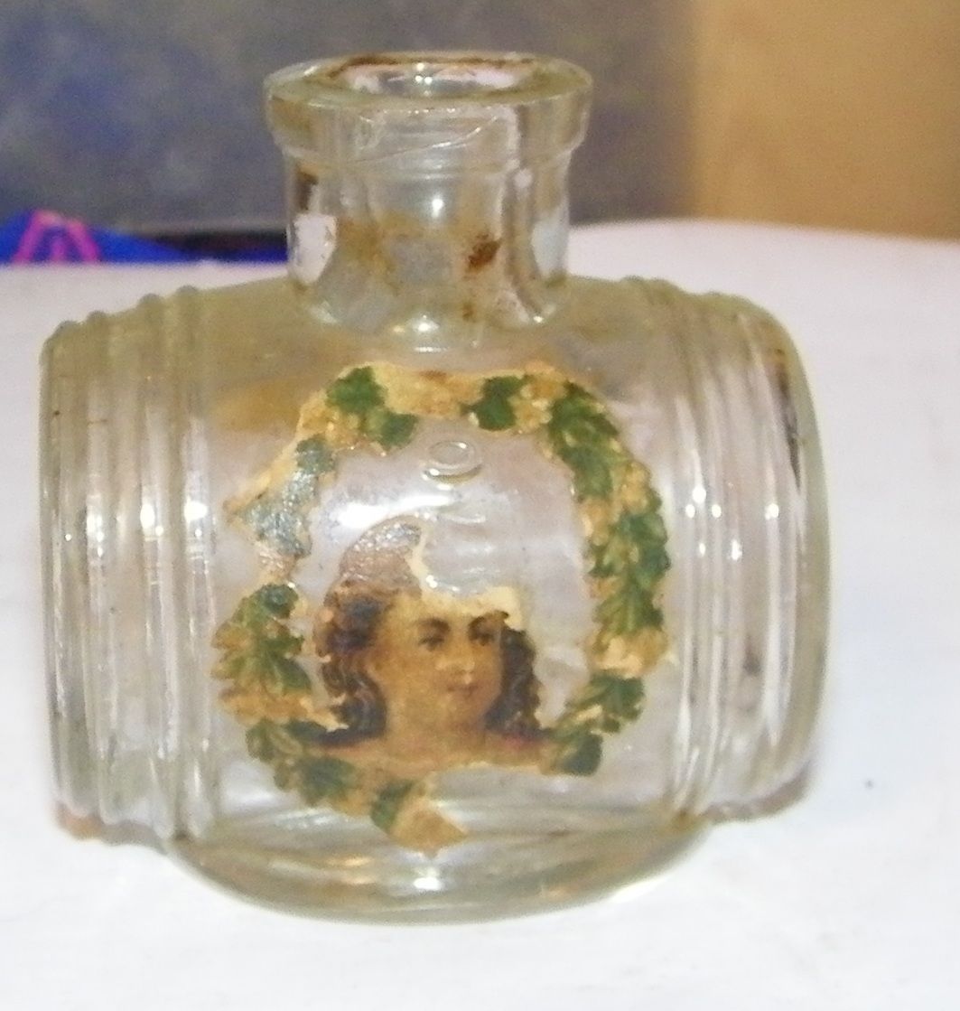 vintage perfume bottle-barrel type hand finished lip-embossed Parmarch has label