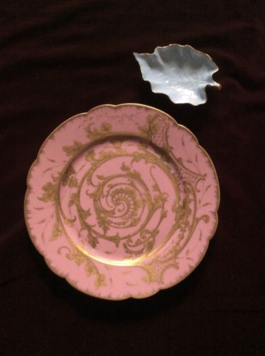 Lot of "Sevres" Rococo Pink Cabinet Plate & Limoges Leaf Pin Dish