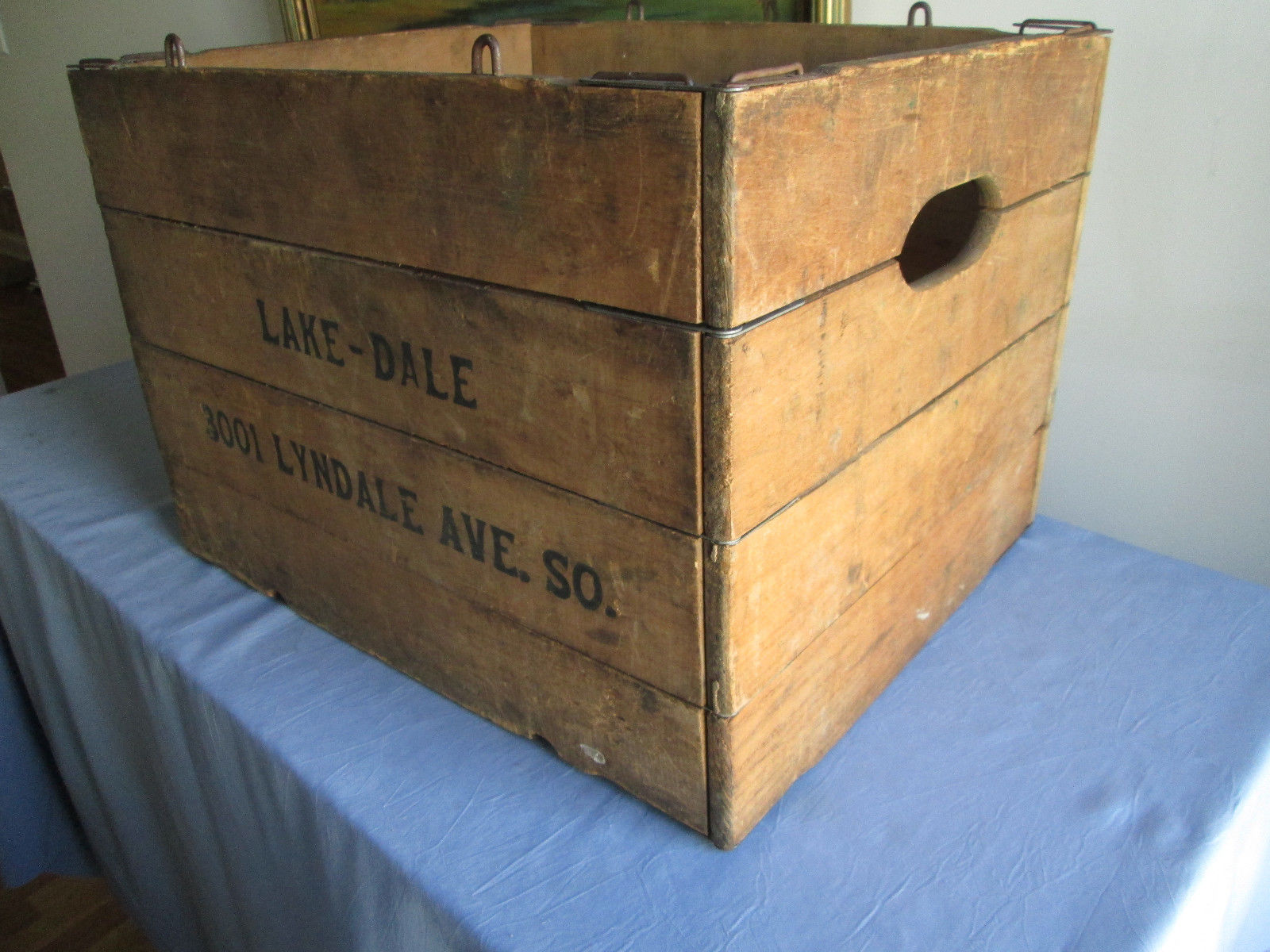 ANTIQUE HUBBARD'S WOODEN FOLDING BOX COLLAPSIBLE WOOD CRATE LAKE-DALE NO RES