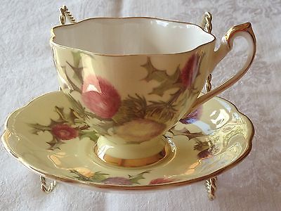 Yellow QUEEN ANNE Thistle Pattern - Gold Rim and Footed - rare in its colour 415