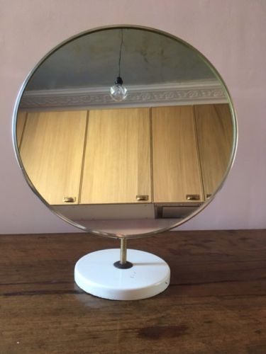 Title (ebay affiliate link): 1960s Large Round Brass And White Enamel Table Mirror