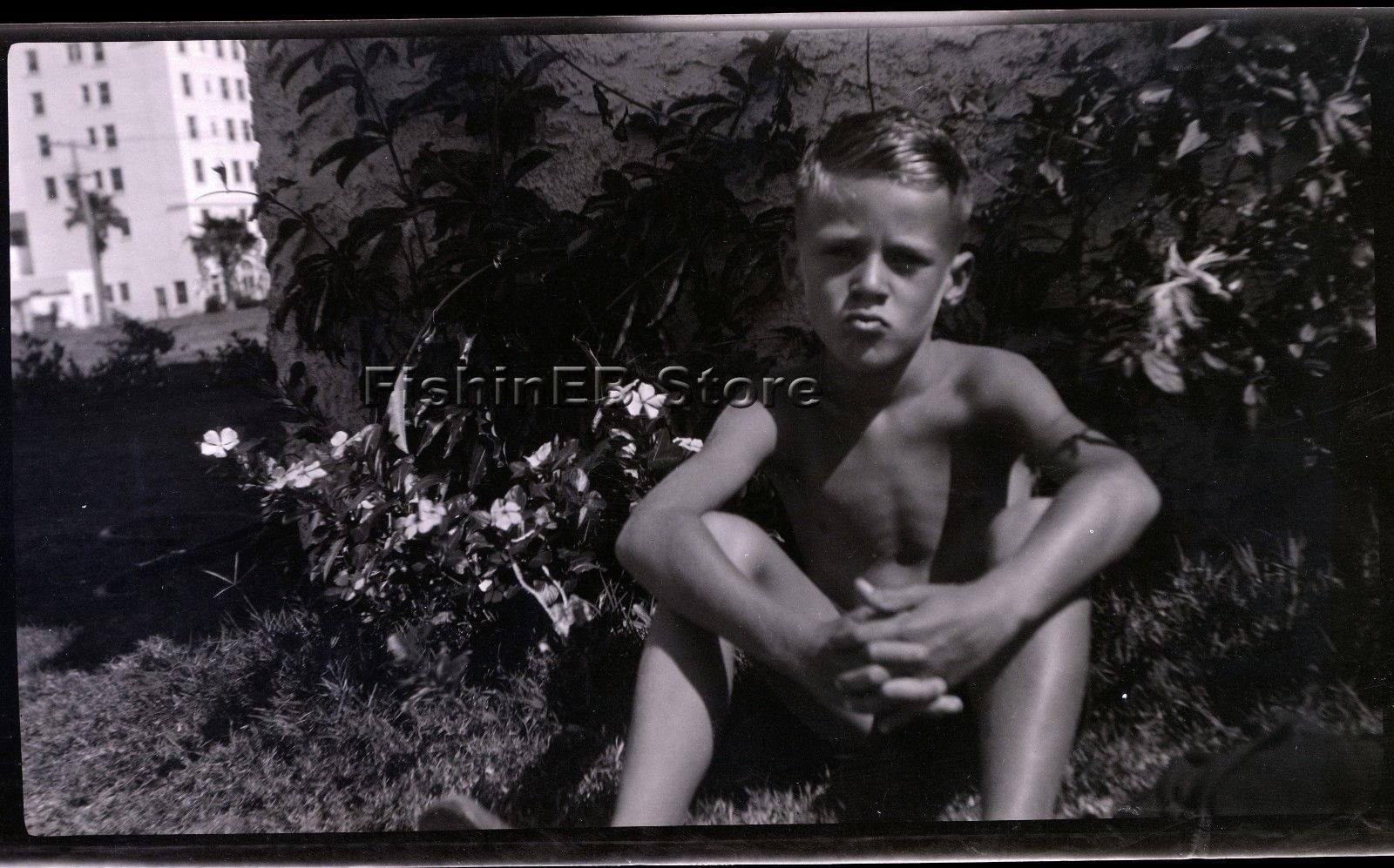 Title (ebay affiliate link): Vintage Film Negative Shirtless Boy Pouting Duck Face Tough Guy Pose Serious v27