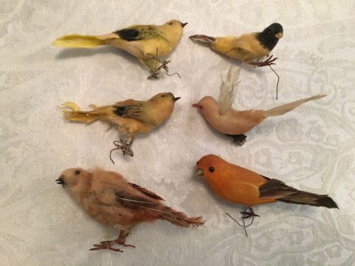Title (ebay affiliate link): 6 VINTAGE SPUN COTTON BIRD PICKS- CHRISTMAS ORNAMENTS- REAL FEATHERS