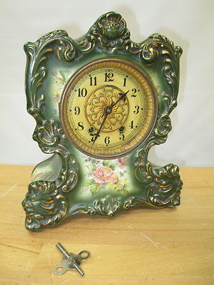 Title (ebay affiliate link): c1890s WATERBURY TOWER PORCELAIN HAND PAINTED MANTLE CLOCK 10.5" x 9"