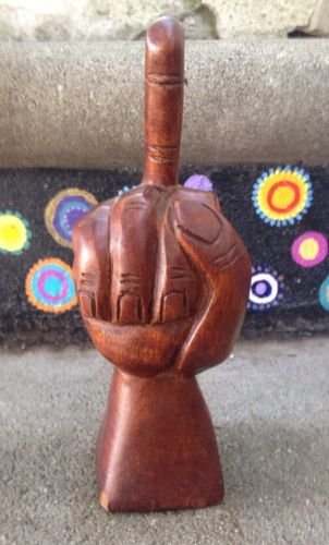 Title (ebay affiliate link): Vintage wooden carved Hand w/ middle finger flipping the bird 60s 70s head shop