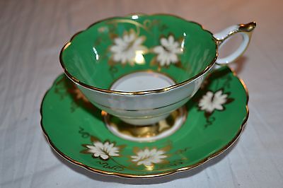 Beautiful Royal Stafford Green Gold and Floral Tea Cup & Saucer England.